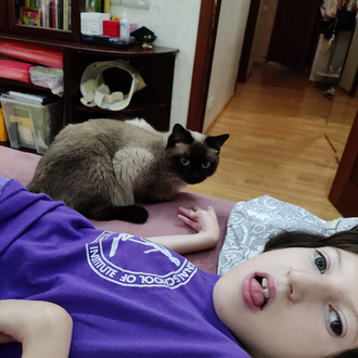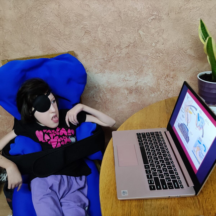 Ане потребовался целый год, чтобы адаптироваться к школе, учителям, детям, и сегодня она с готовностью приезжает на занятия и любит находиться в компании, выстраивать отношения и участвовать в разговорах. Между занятиями сопровождающая отвозит Аню в комнату отдыха: после сидения в коляске девочке необходимо сменить позу и полежать: тело очень устает. Перерывы на отдых встроены в ритм учебного дня, индивидуальный у каждого ребенка «Красок этого мира».