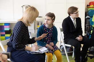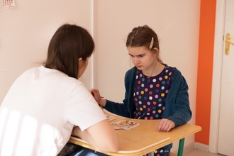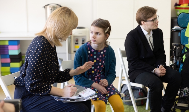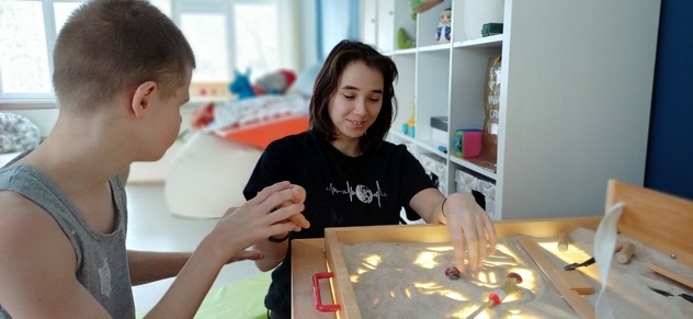 Во время занятий и перемен педагоги и сопровождающие помогают тем подросткам, которые не используют речь, выражать свои желания с помощью средств альтернативной и дополнительной коммуникации: тактильного расписания занятий, коммуникативного планшета с карточками‑иконками PECS, кнопками для подтверждения решений («да/нет», «хочу продолжить»). Это даёт каждому подростку возможность участвовать в занятиях, выражать свое мнение и быть частью сообщества.