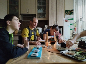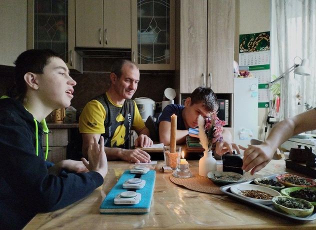Наши «красочные» ребята встречались не только в школе, но и ходили друг к другу в гости. В ноябре Миша Хандажинский со своим сопровождающим Станиславом был в гостях у Ильи Мальцева и его сопровождающего Дмитрия. Ребята пили китайский белый чай Бай Му Дань. Мы видим: именно в таких простых моментах рождается настоящая дружба.
